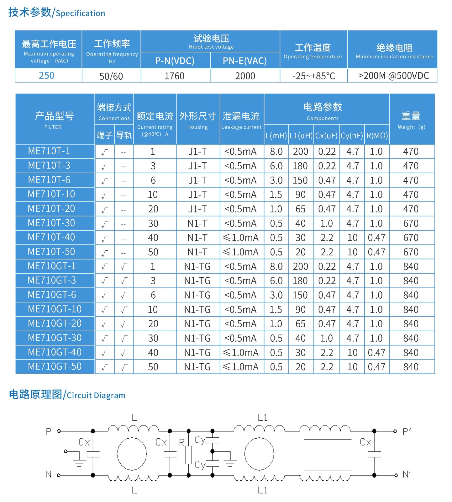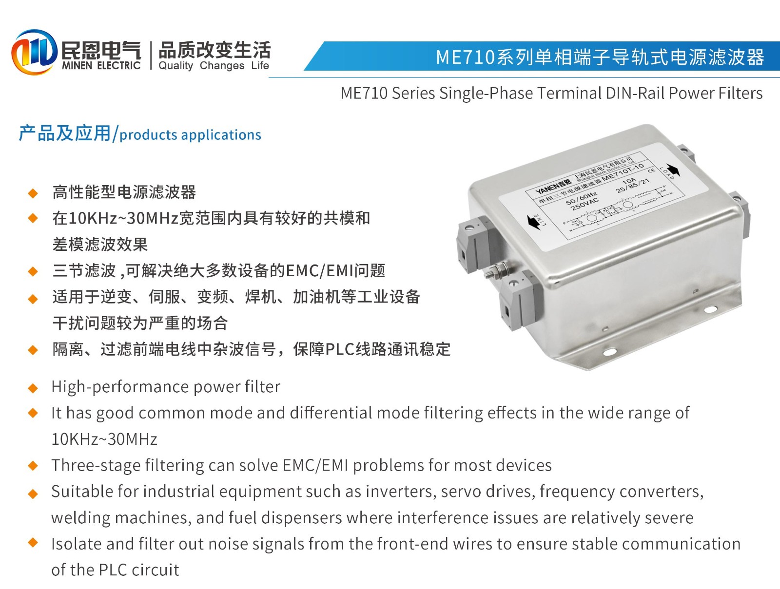 ME710TG系列单相三节导轨式电源滤波器