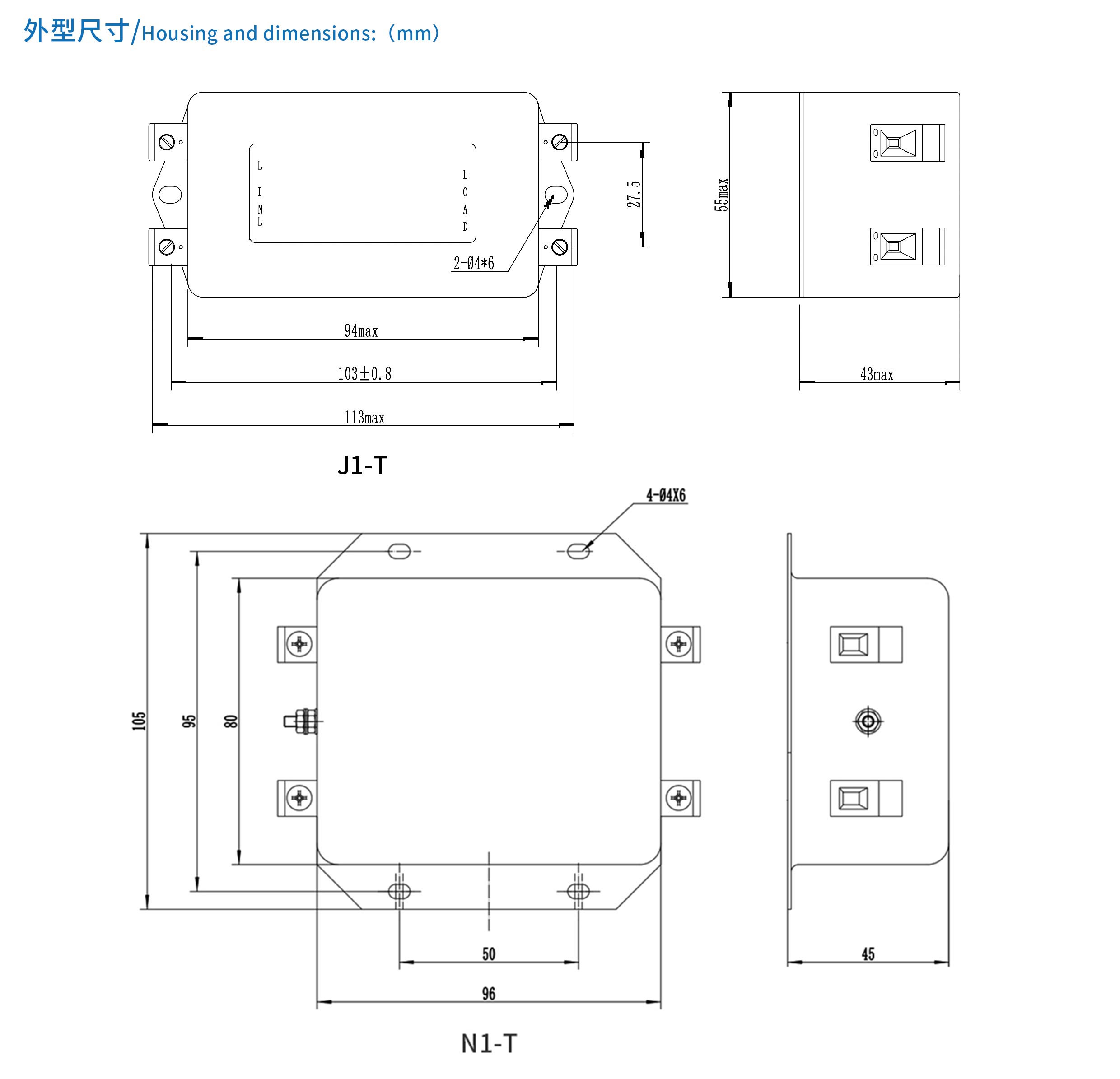 高性能型电源滤波器,在10KHz~30MHz宽范围内具有较好的共模和差模滤波效果,三节滤波,可解决绝大多数设备的EMC/EMI问题