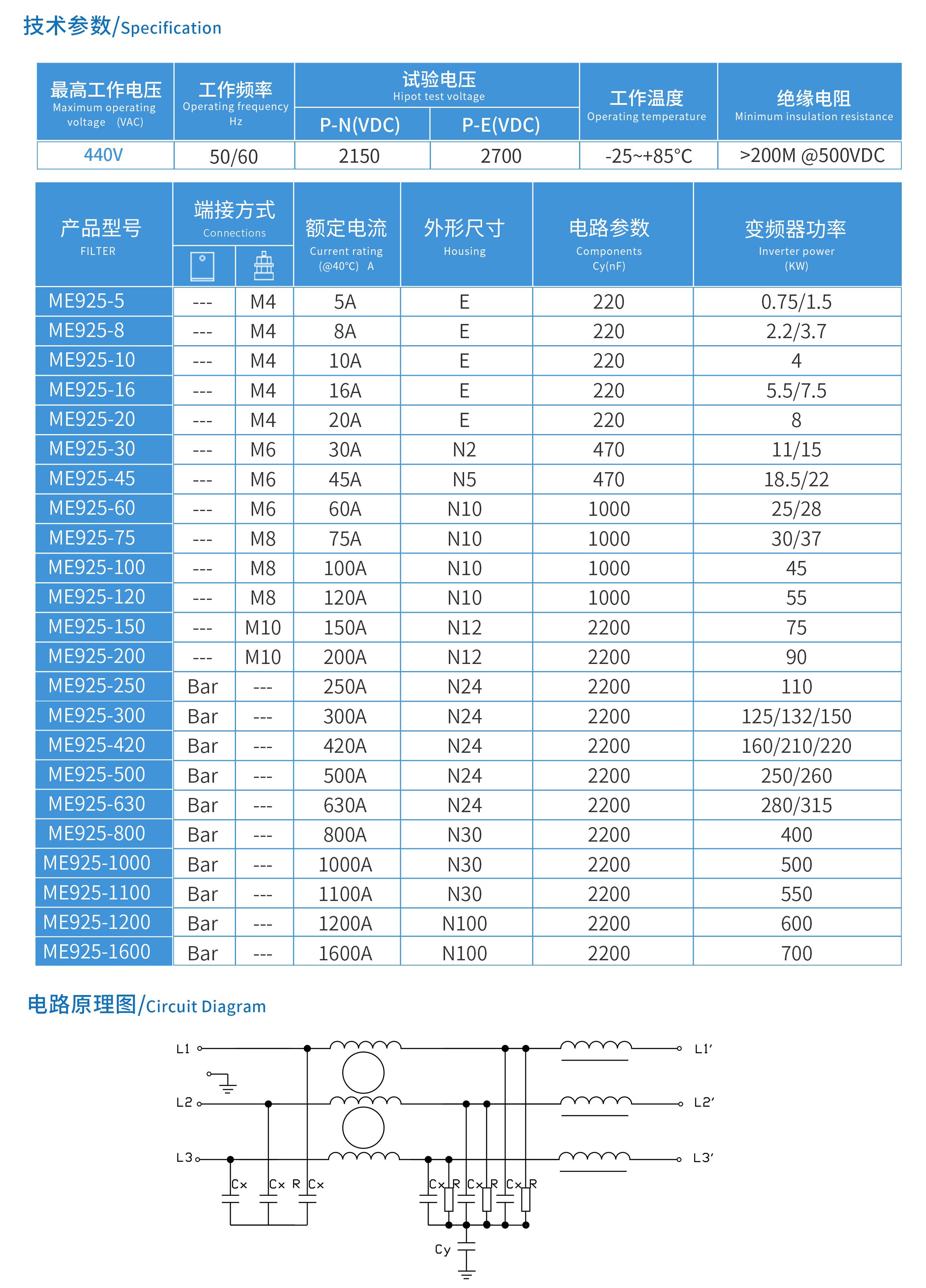 基于变频器工作时输入端对电网及PLC、DCS系统等数字设备产生干扰的领域而专门设计,优异的共模和差模抑制能力,可有效抑制变频器对外界的传导干扰,保证周边设备的正常运行,标准匹配国内外多种低压变频器,提高系统功率因数,缓解三相不平衡